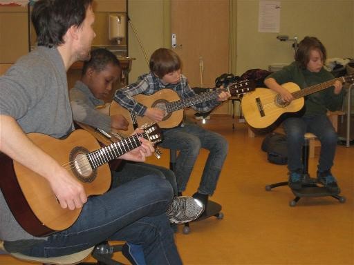 Noen i musikkgruppa øver konsentrert
