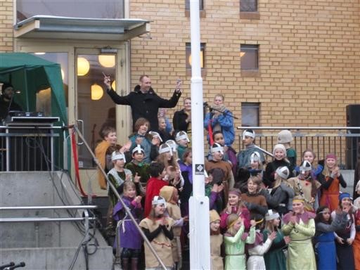 I dag gikk startskuddet for skolens tiende Vinterfestival. En flott festivalsang, spesielt komponert for 10-års jubileet, ble fremført av teatergruppebarna på trappa, før alle elevene gikk til sine grupper for å ta fatt på årets festivaltema, vikingtida. Vi ser frem til fem skoledager med mye kreativt og lærerikt arbeid, og gleder oss til å vise resultatene torsdag 8.mars kl.17.00. Utstilling og diverse opptredener vises i og utenfor skolebygget denne kvelden. Velkommen!