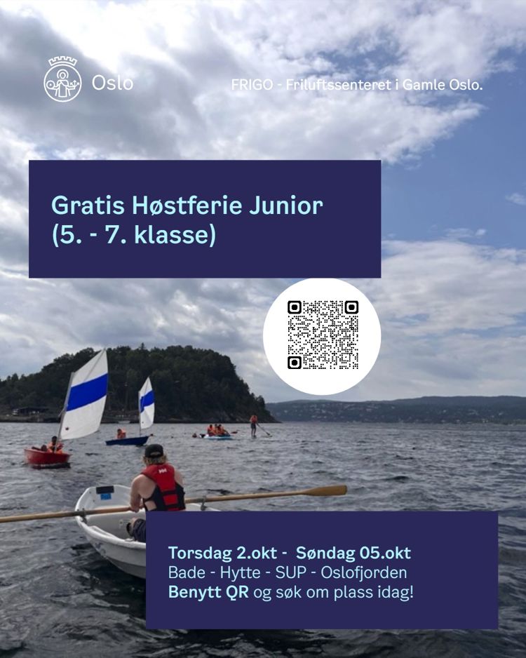 Feriekoloni med FRIGO på Husbergøya i høstferien Publisert: 17.9.2025 FRIGO inviterer elever på 5.-7.trinn. Søk om plass for å bli med! Påmelding her: https://nettskjema.no/a/host25